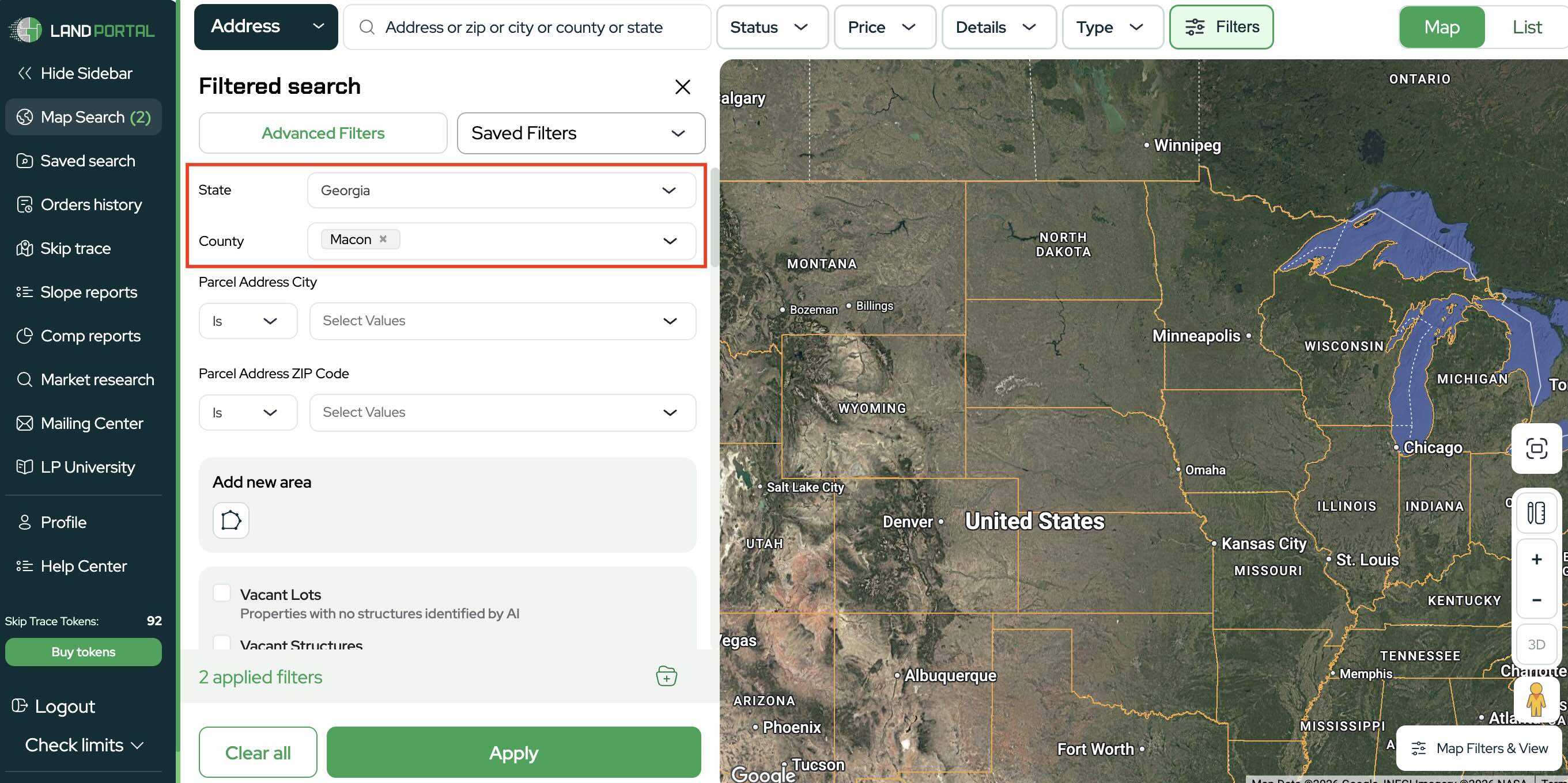 The Filtered Search tool is one of the most powerful ways to refine your data and find the right land deals faster.