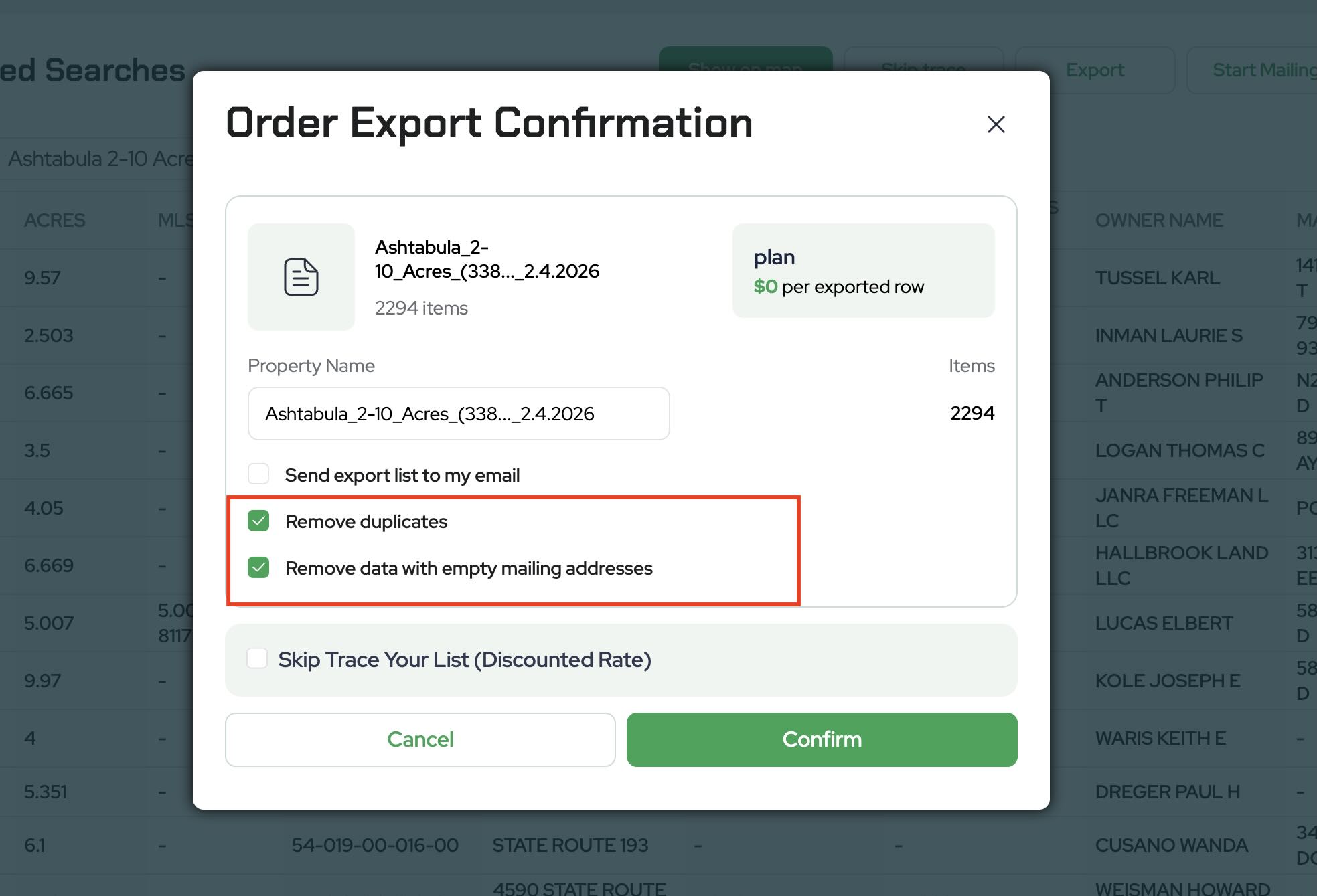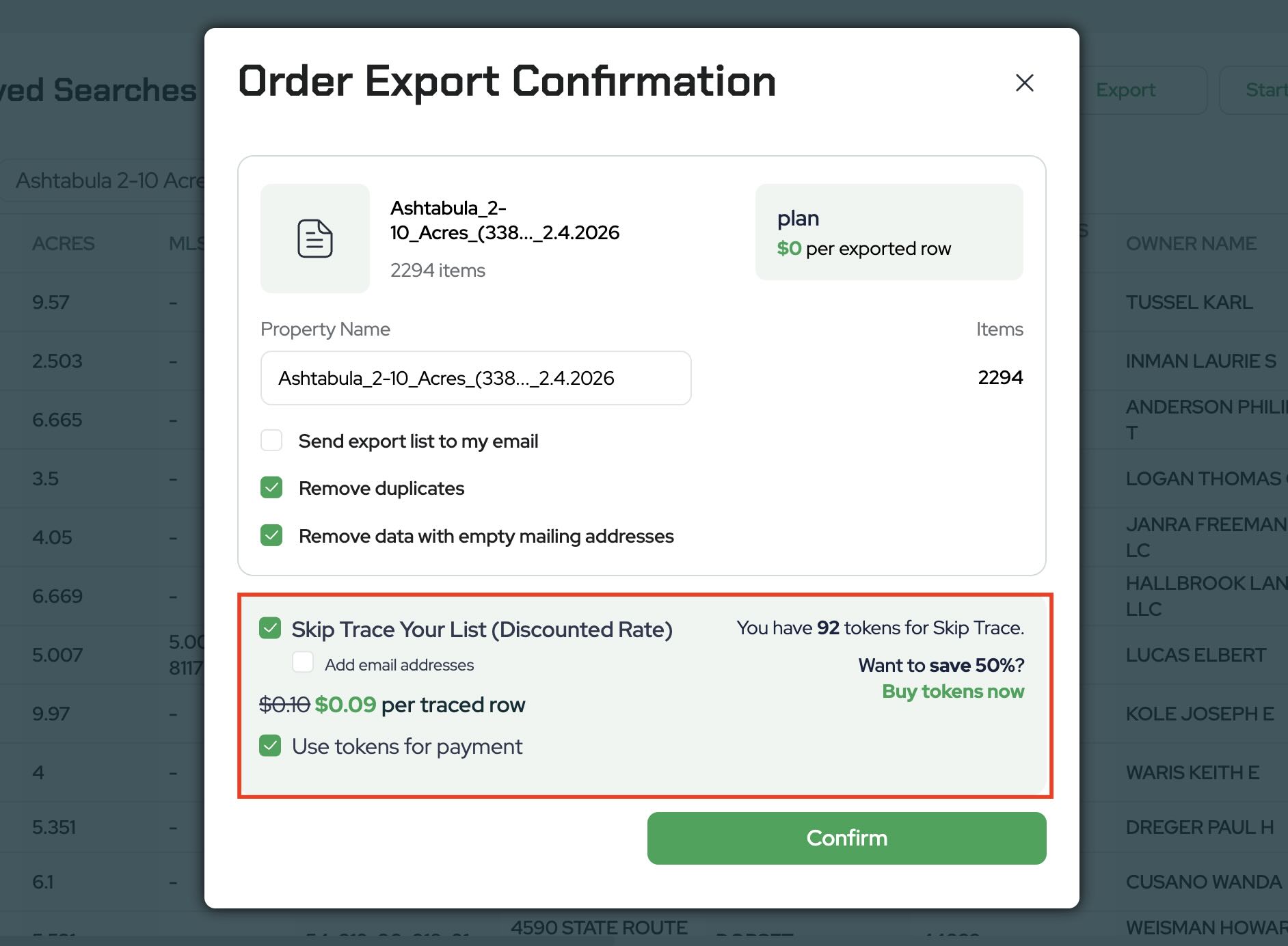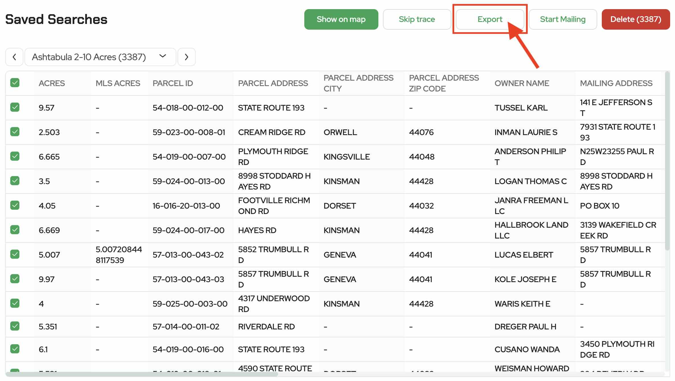 13. (Optional) Skip trace your list directly from the Saved Lists tab