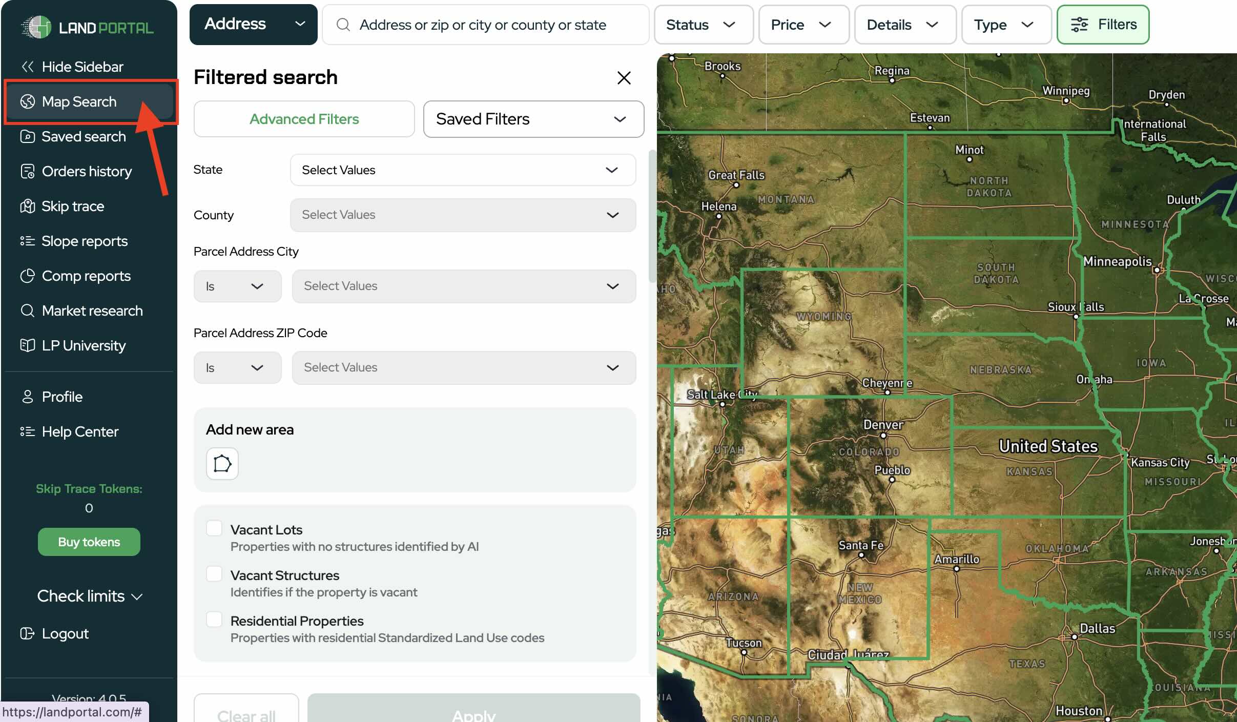 Step #1: Open Land Portal and the Map Search