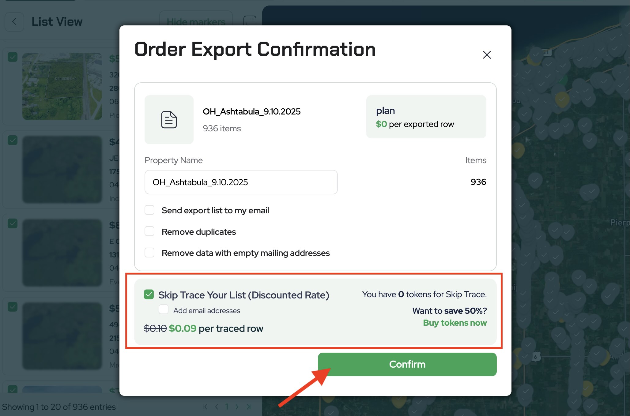 Click Export to download your buyer list. Choose to skip trace directly from the export screen.