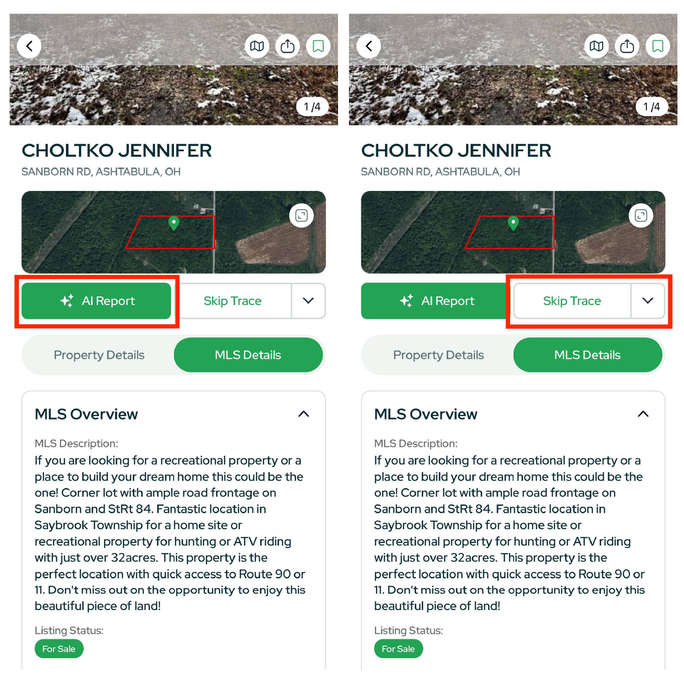 - Skip Trace – instantly pull owner contact info.