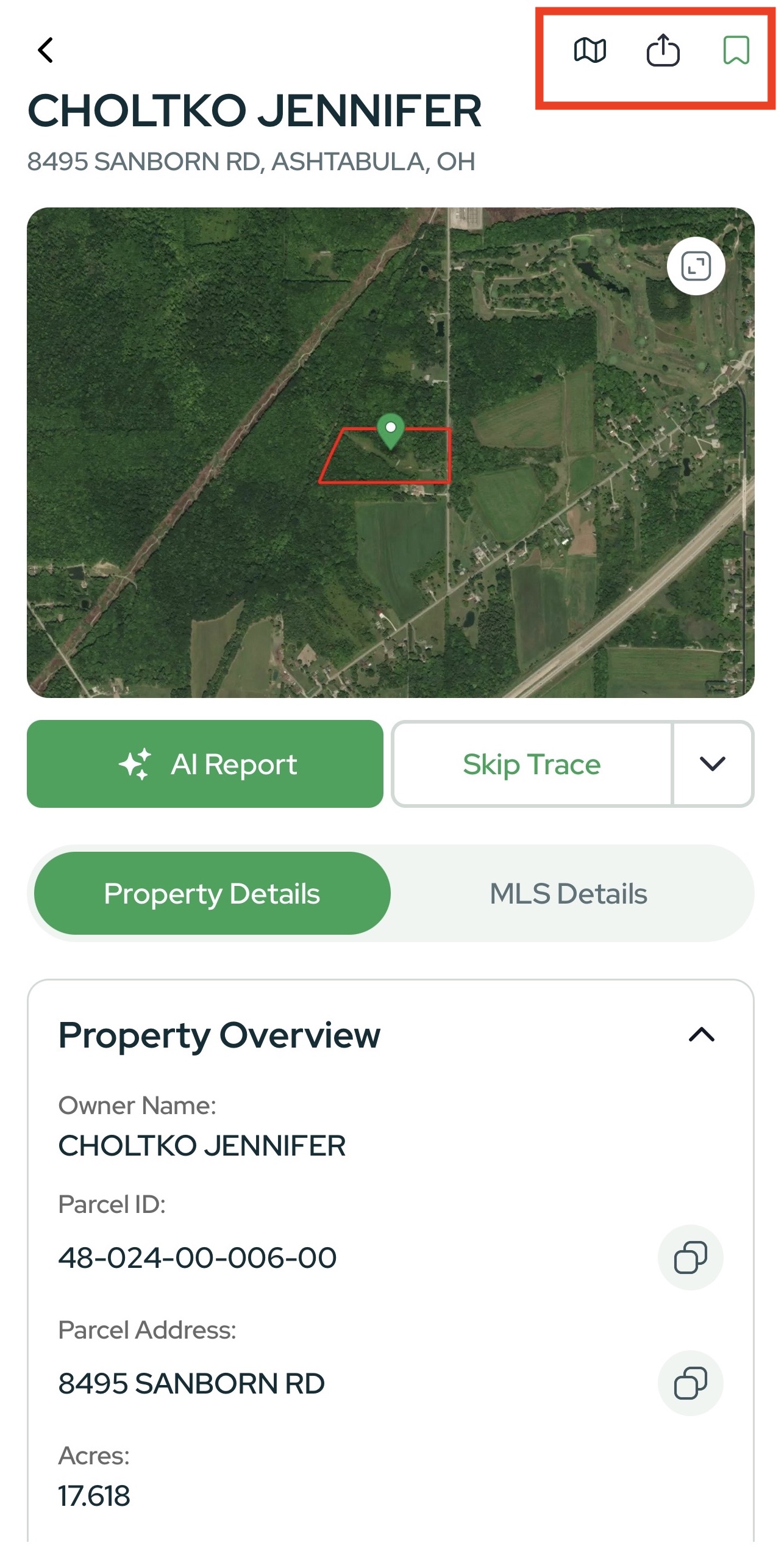 The Property Card centralizes everything you need about a parcel: