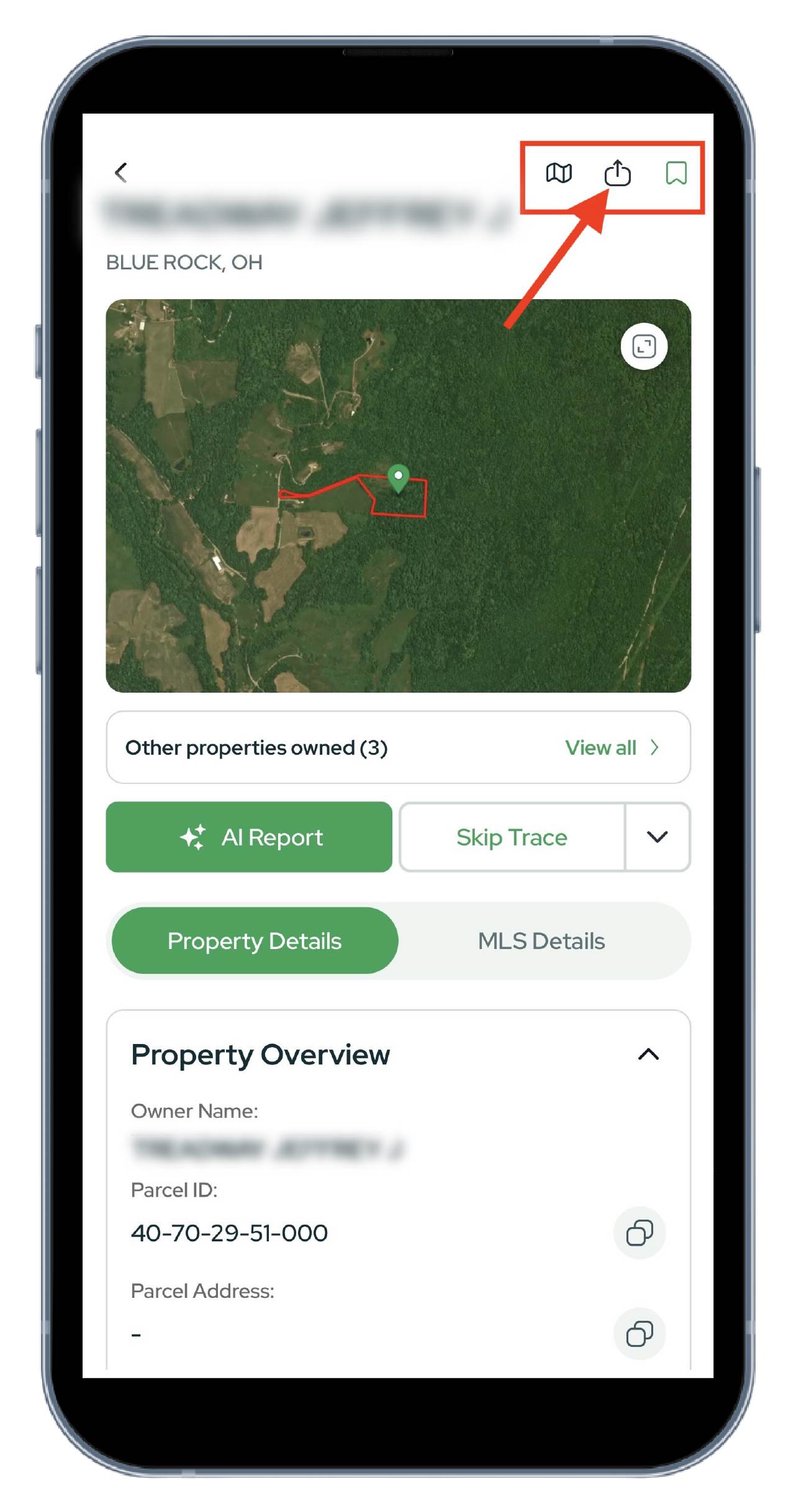 The parcel is now shared and ready for review. This allows your team to quickly evaluate properties and collaborate without leaving the app.