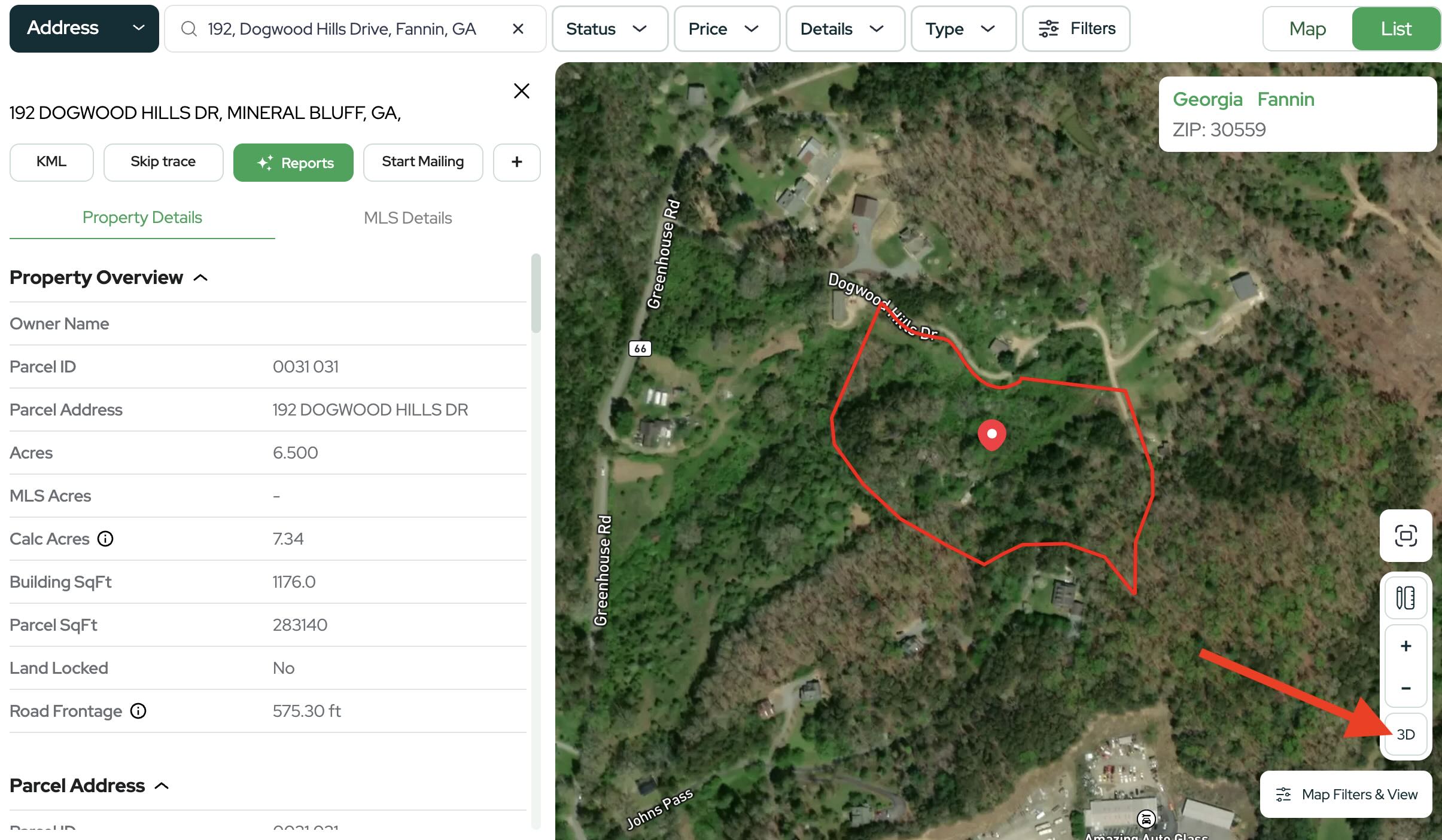 The 3D Map allows you to visually inspect terrain and better understand how elevation changes across the parcel.