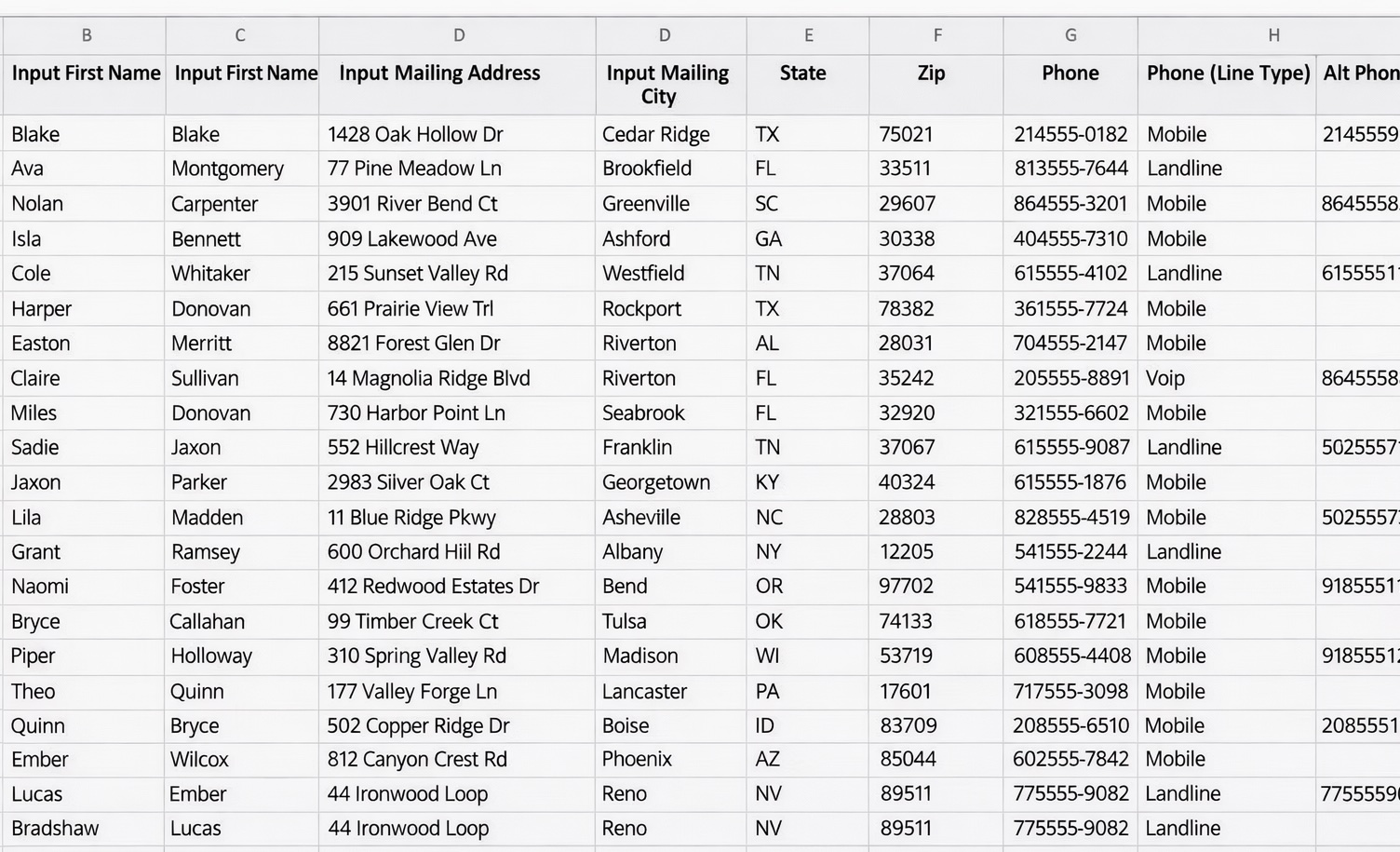 Unlike many services that deliver skip trace results in separate files, Land Portal merges everything into one organized spreadsheet. You can immediately upload it into your dialing or texting platform without extra formatting.