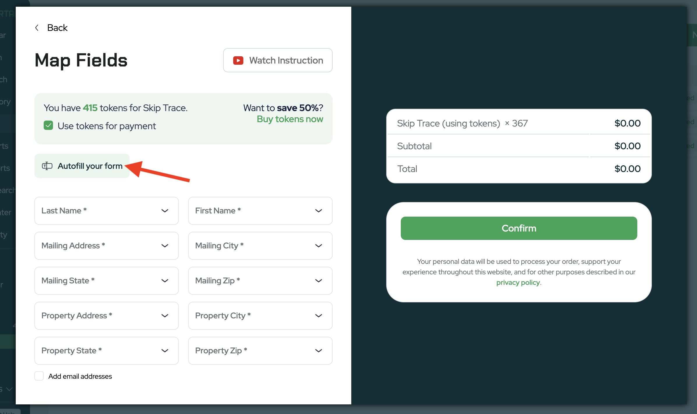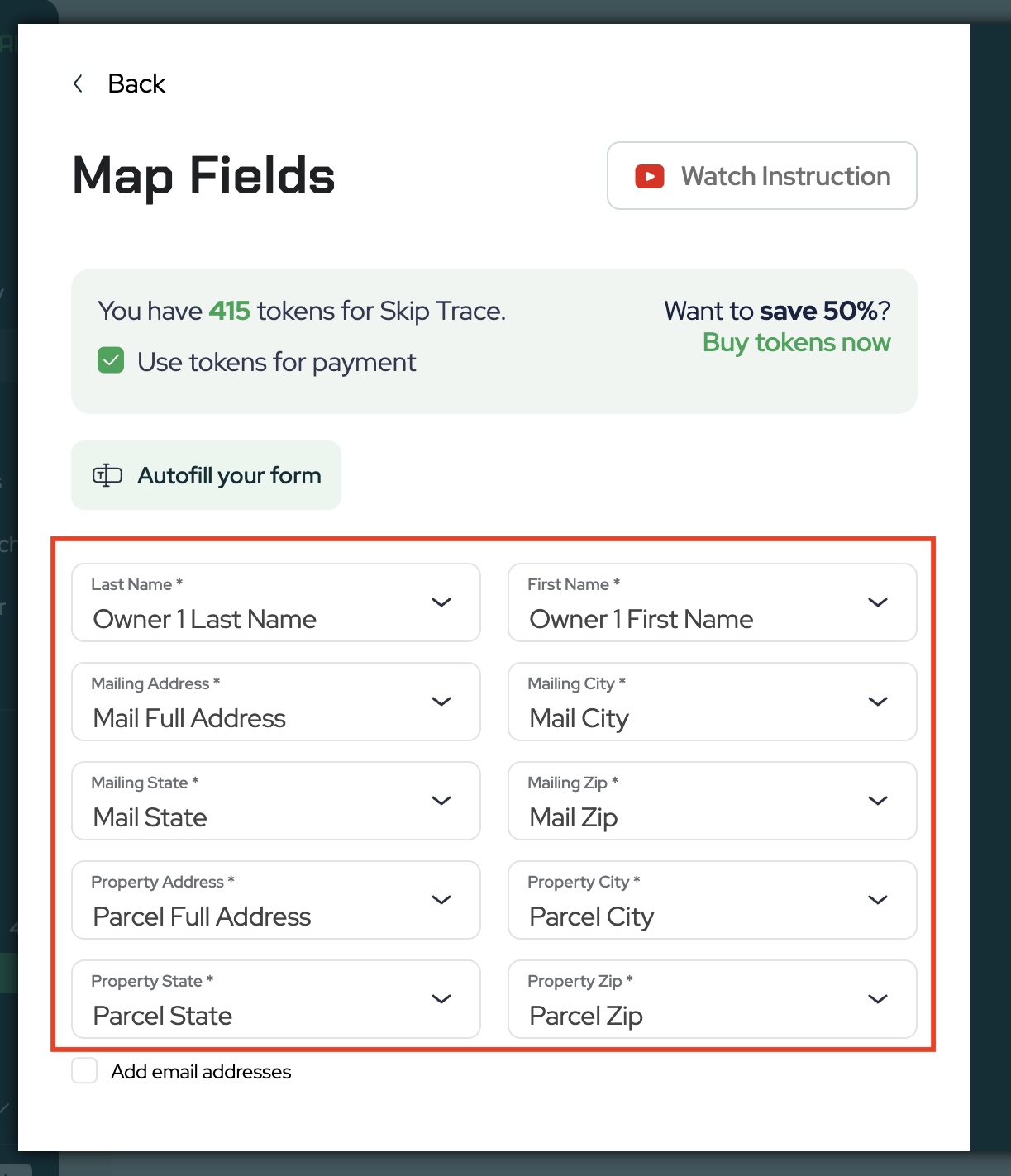 Click Autofill to automatically match your CSV columns to Land Portal’s required fields.