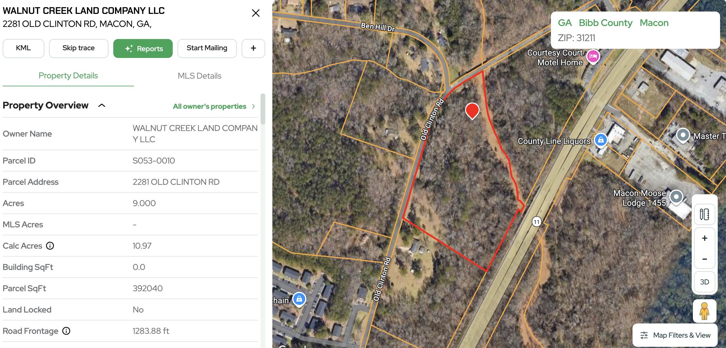 For example, if the property is 9 acres, the report may initially show properties between roughly 6.8 and 11.3 acres.