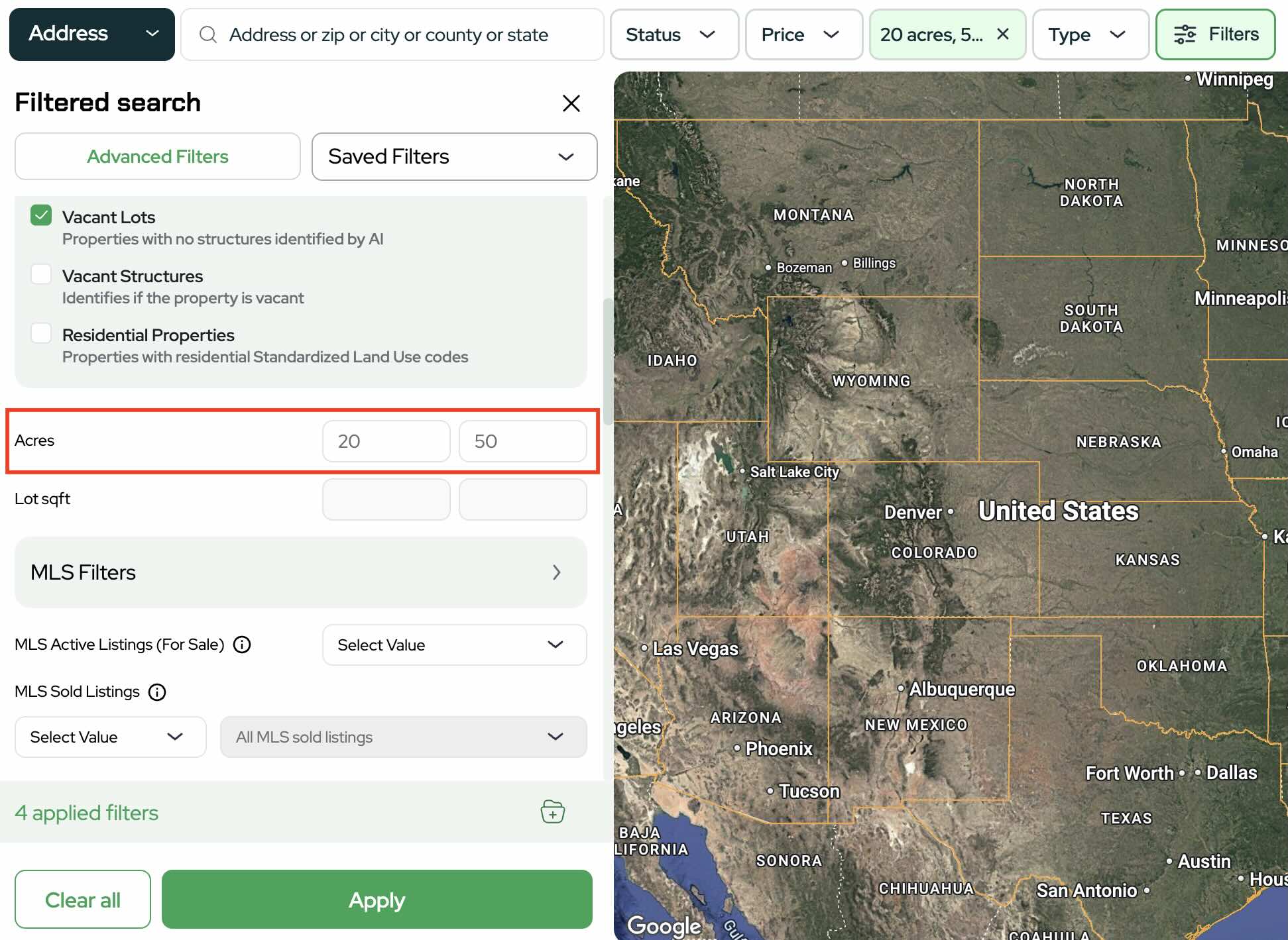 - Set Acreage Filters