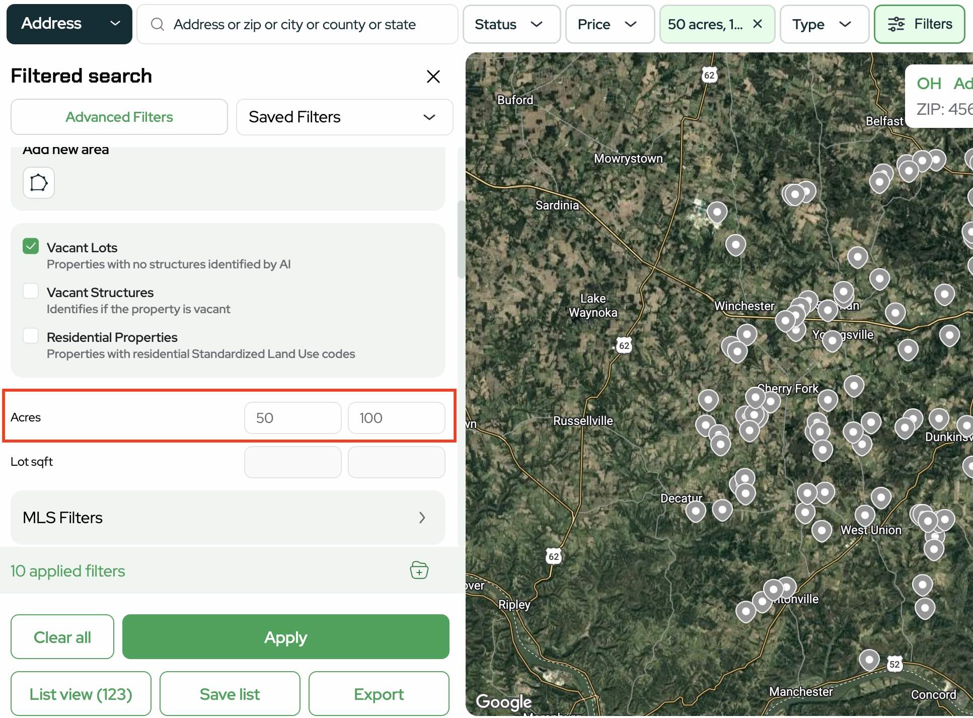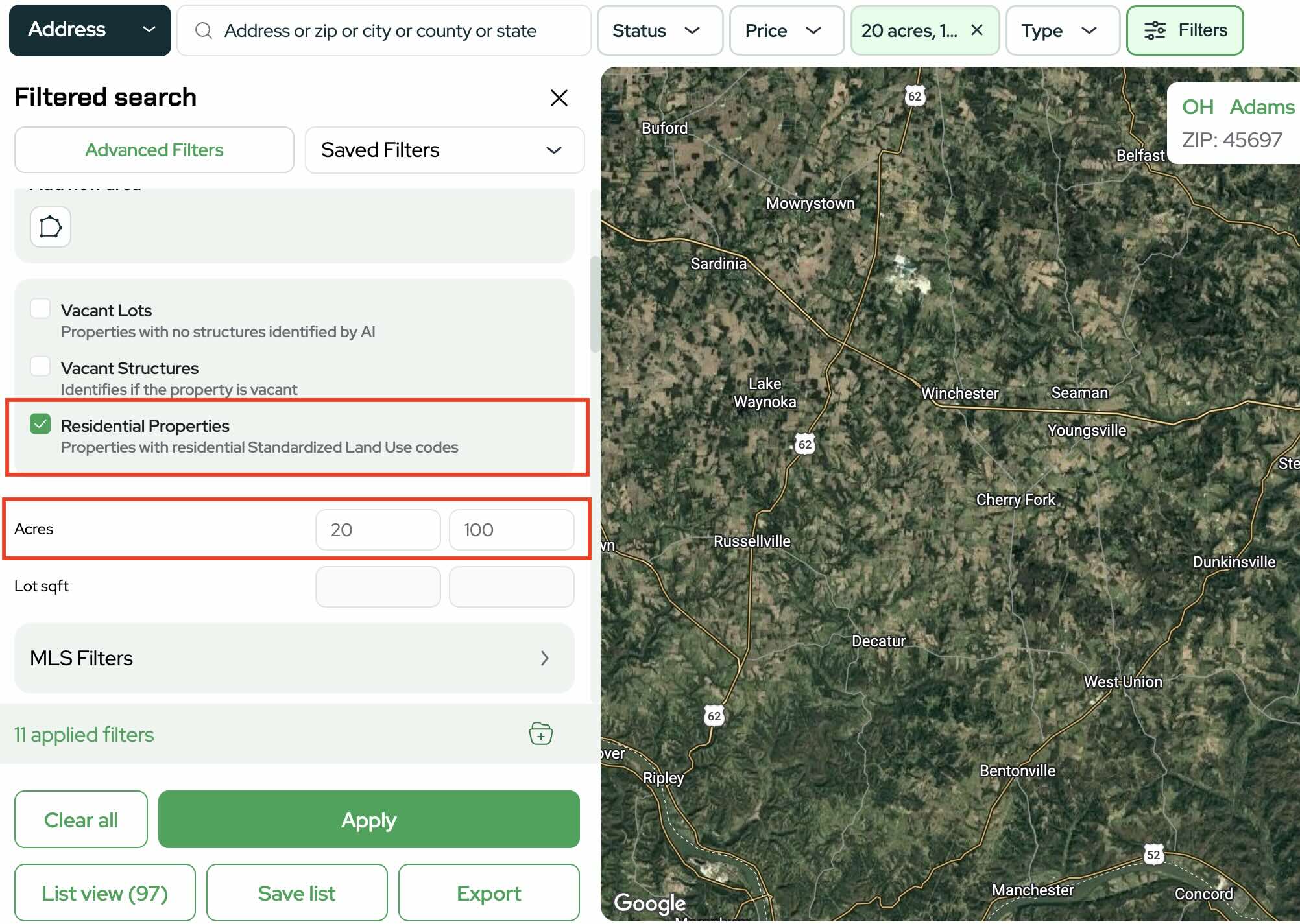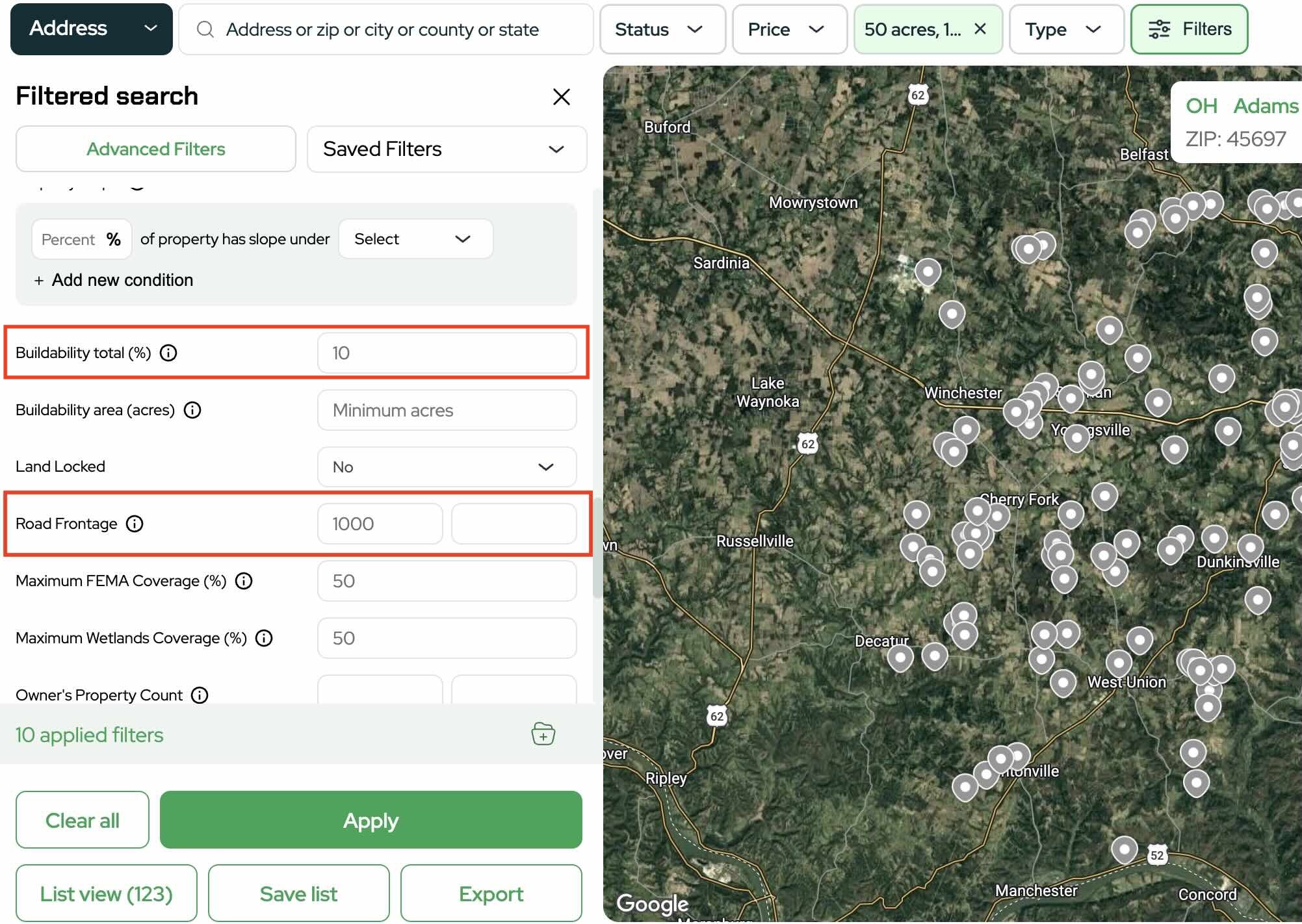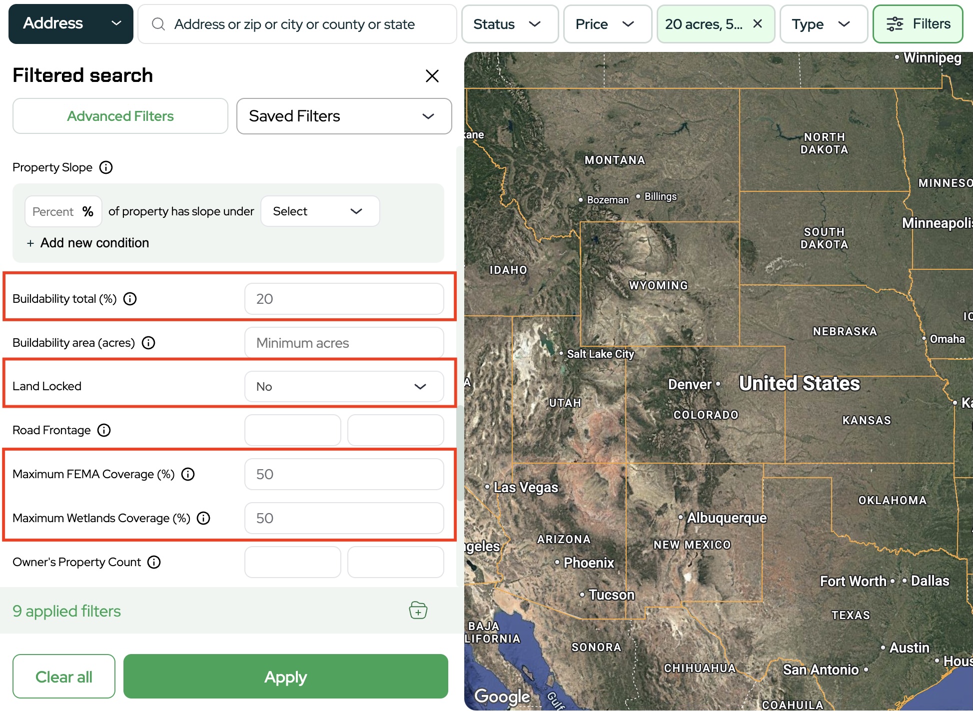 This keeps your list focused on usable land.
