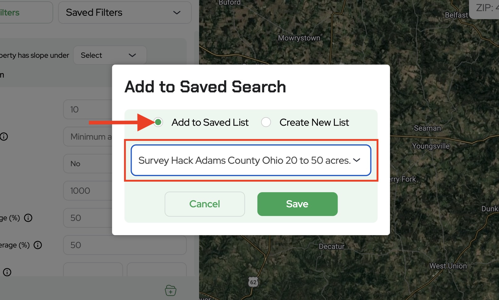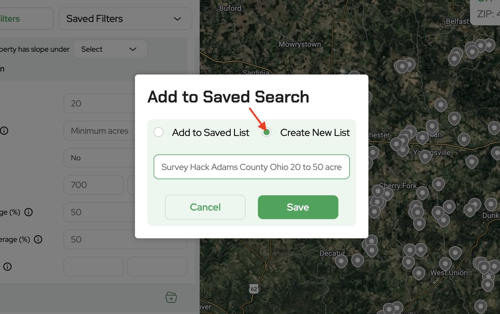 For example, Survey Hack Adams County Ohio 20 to 50 acres.